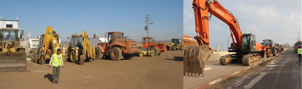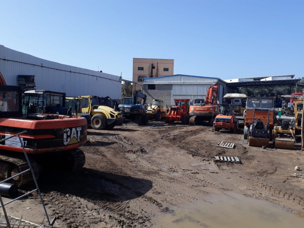 The fleet includes excavators, loaders, rollers, dozers, trucks, generators, and a range of auxiliary machinery used across major construction projects in Palestine.